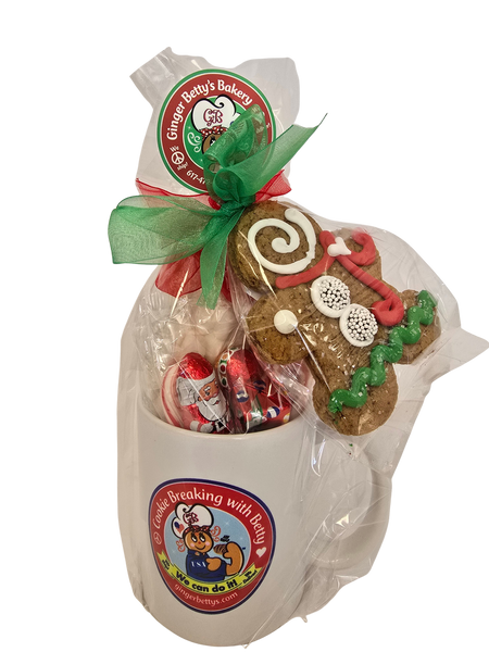 Swiss missing n' cookie kissing with GB's Mug. Filled with cocoa, cookies & candy. Perfect for teacher gifts, friends, family, or just for you to cozy up this Christmas season and enjoy cookies n' cocoa...for you or for two! Includes Marshmallow, cocoa, candies, and crunchy cookie for dipping!