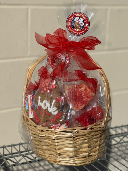 Ginger Betty Valentine's Day basket filled with Ginger snaps and assorted cookies. Cookies and basket types may change based on availability.